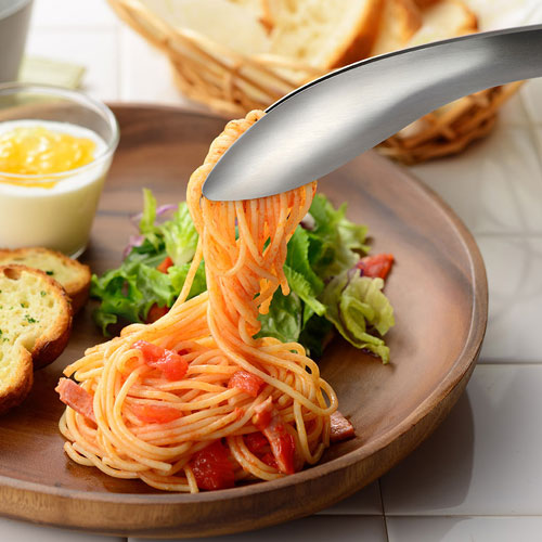 先端が細く、パスタやサラダをきれいに盛りつけることができます。