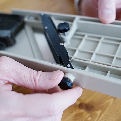 本体の溝をバットやボウルにひっかけます