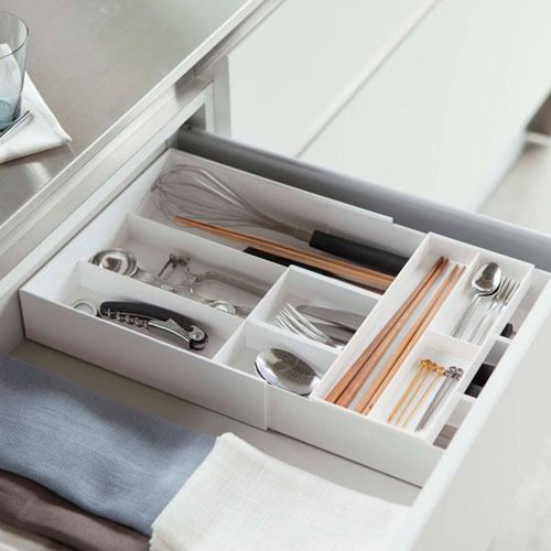 山崎実業 伸縮&スライド カトラリートレー プレート Plate ホワイト 3384