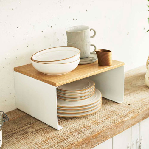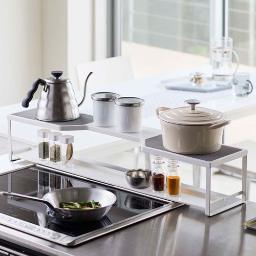 山崎実業 伸縮コンロ奥ラック プレート Plate ホワイト 3916