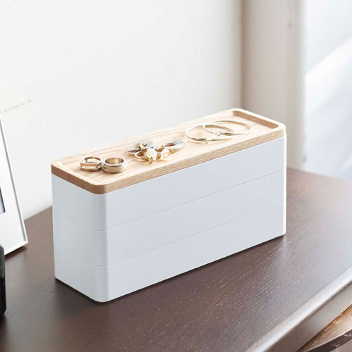 山崎実業 トレー付きスリムアクセサリーケース 3段 リン RIN ナチュラル 5811
